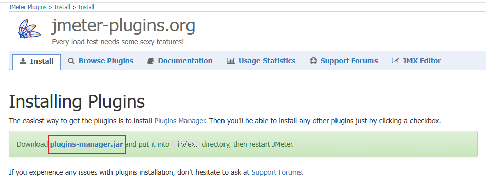 이후 jmeter-plugins 설치를 위해 https://jmeter-plugins.org/install/Install/으로 접속하여 다운로드 받아주시고 JMeter의 lib/ext 폴더 안에 설치한 jmeter-plugins-manager-1.11.jar를 넣어주세요.