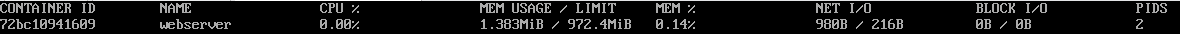 docker container stats webserver 를 입력한 후 종료할때는 ctrl+c 를 입력하여 빠져나오시면 됩니다.