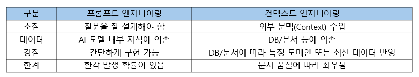 E. 프롬프트 엔지니어링 vs 컨텍스트 엔지니어링 간단 비교