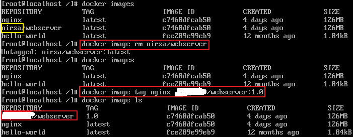 만약 user name을 변경만 할 경우 docker image tag nirsa/webserver:1.0 abcd/webserver:1.0 과 같이 user name 부분만 변경하여 주시면 됩니다.