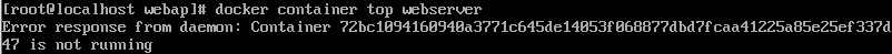 아래 이미지와 같이 webserver 라는 컨테이너의 프로세스를 확인하려 했는데, "Error response from daemon: Container [id] is not running" 에러가 발생 했습니다.