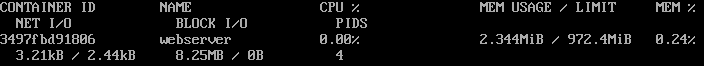 아래 명령어를 사용하면 해당 컨테이너의 상태(CPU, MEM 등)를 실시간으로 확인 할 수 있습니다.
