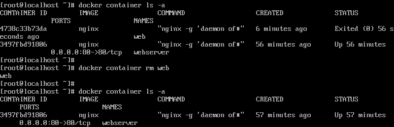 컨테이너 삭제는 아래와 같이 가능하고, -v 옵션을 통해 볼륨 삭제도 가능 합니다.