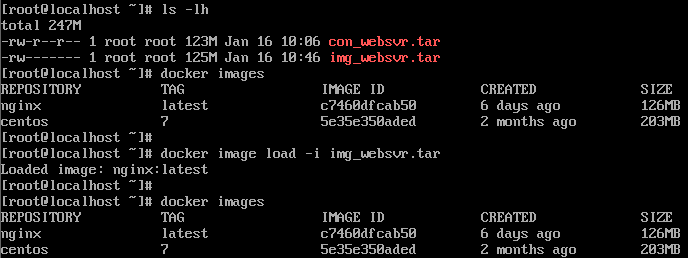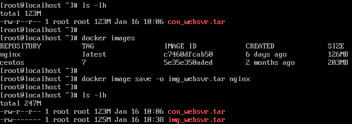 2번과는 다르게 컨테이너가 아닌, 이미지를 사용하여 tar 파일을 생성 합니다. 아래는 nginx 이미지를 사용하여 img_websvr.tar 이라는 파일을 생성 합니다.
