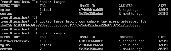 - docker image import [tar 파일명] [사용자명]/[이미지명]:[태그명]