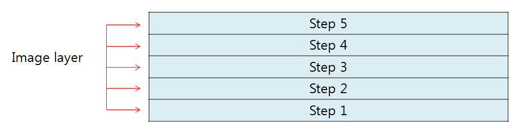 dockerfile을 build 했을 때 아래와 같이 각 스탭별로 이미지가 생성되며 layer 구조를 이루게 됩니다.
