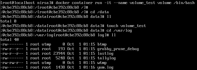 docker run -it -v /root/docker/log/:/var/log/ centos /bin/bash