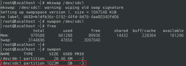 mkswap [디바이스명] ## ex) mkswap /dev/sdc1