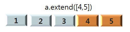 extend는 리스트를 연결시킬 수 있습니다. 위의 append에서는 리스트를 추가할 때 하나의 요소로써 리스트 형태가 그대로 들어가게 되었는데, extend를 사용하면 리스트를 추가 하더라도 각각의 리스트 요소들이 흩어져 들어갑니다.