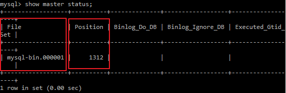 Master DB의 로그 번호와 포지션 번호는 아래와 같이 Master DB에서 show master status; 를 입력하여 확인할 수 있습니다.