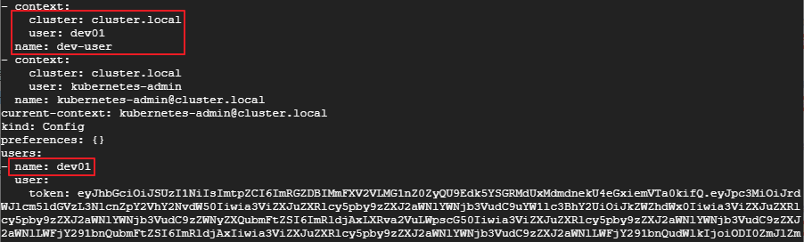 kubectl config set-credentials dev01 --token=eyJhb~~