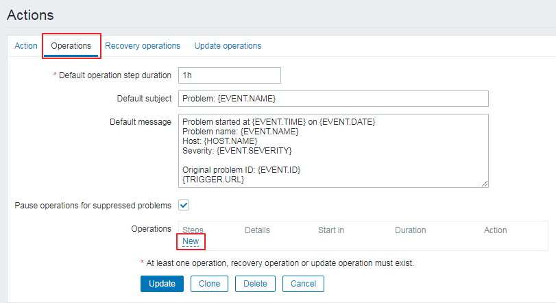 Configuration → Actions → Create action을 클릭 합니다.