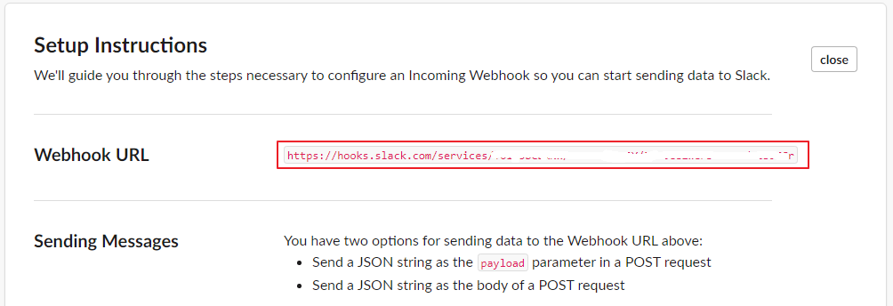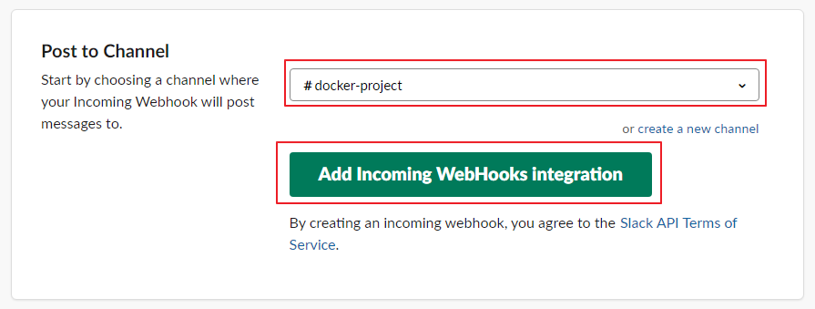 Slack 홈페이지(https://my.slack.com/services/new/incoming-webhook) 에서 아래 화면을 참고하여 URL을 확인하고, 메모장 같은곳에 복사하여 보관 합니다. Slack 로그인이 필요하며 Choose a channel... 에서는 원하시는 채널을 선택하시면 됩니다.