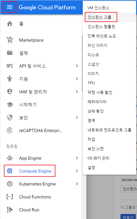 - 1. 구글 클라우드 콘솔창에 진입 후 Compute Engine → 인스턴스 그룹 클릭