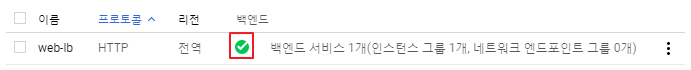 로드밸런싱을 설정한 부하 분산기 메뉴에서 봣을때 아래와 같이 체크 표시가 되어야 설정이 완료된거고, 시계 방향으로 돌아간다면 설정중인것이니 잠시 기다려주셔야 합니다. (설정까지 1-3분가량 걸리는것으로 보입니다)