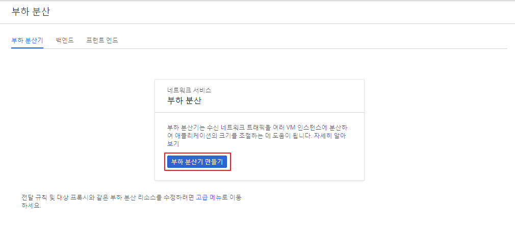 - 2. "부하 분산기 만들기"를 클릭 합니다.