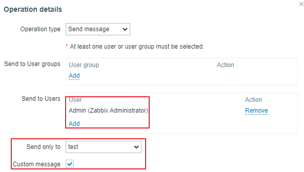 Send to Users에 Admin을 추가 해주세요. 별도로 유저를 생성했다면 그 계정 또는 바로 위의 호스트 그룹에서 선택해도 됩니다.