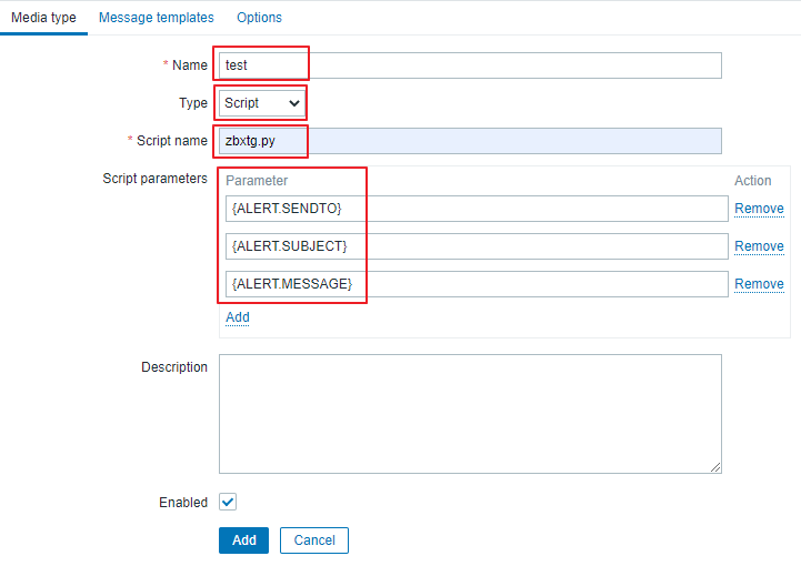 Administration → Media types → Create media type(우측 상단)