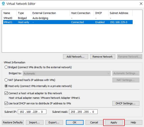 - 5) Add network... 클릭 후 VMnet8 (임의)