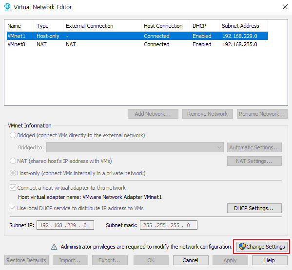 - 1) Edit → Virtual Network Editor...