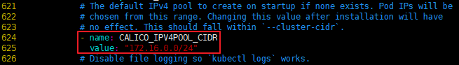 이후 vim 편집기를 이용해 calico.yml 파일을 열은 후 아래 라인을 주석해제하고 8번에서 진행한 Pod CIDE로 수정을 해주시면 됩니다.