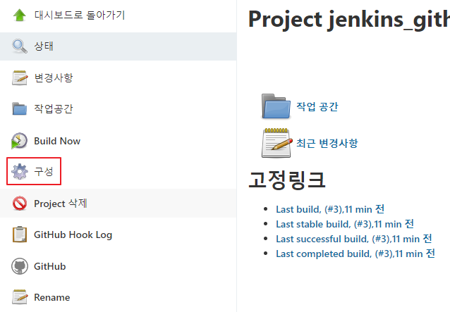 젠킨스 대쉬보드에서 연결할 프로젝트를 클릭 합니다.