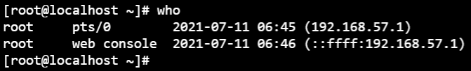 - 터미널 : putty, xhsell 같이 리눅스 서버를 제어할 수 있는 콘솔창이 나옵니다. 신기하게 pts, tty등으로 나오지 않고 "web console"로 출력 되네요. (아래 터미널 스크린샷 참고)