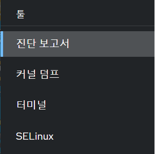 - 진단 보고서 : 보고서를 만드는 메뉴 같은데, 따로 툴이 필요한건지 보고서 생성 버튼이 비활성화 되어 있습니다(...)