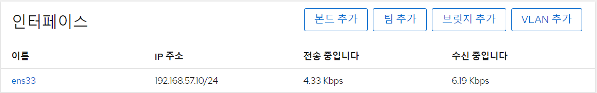 인터페이스 메뉴에서는 본딩,VLAN 등을 설정할 수 있네요.