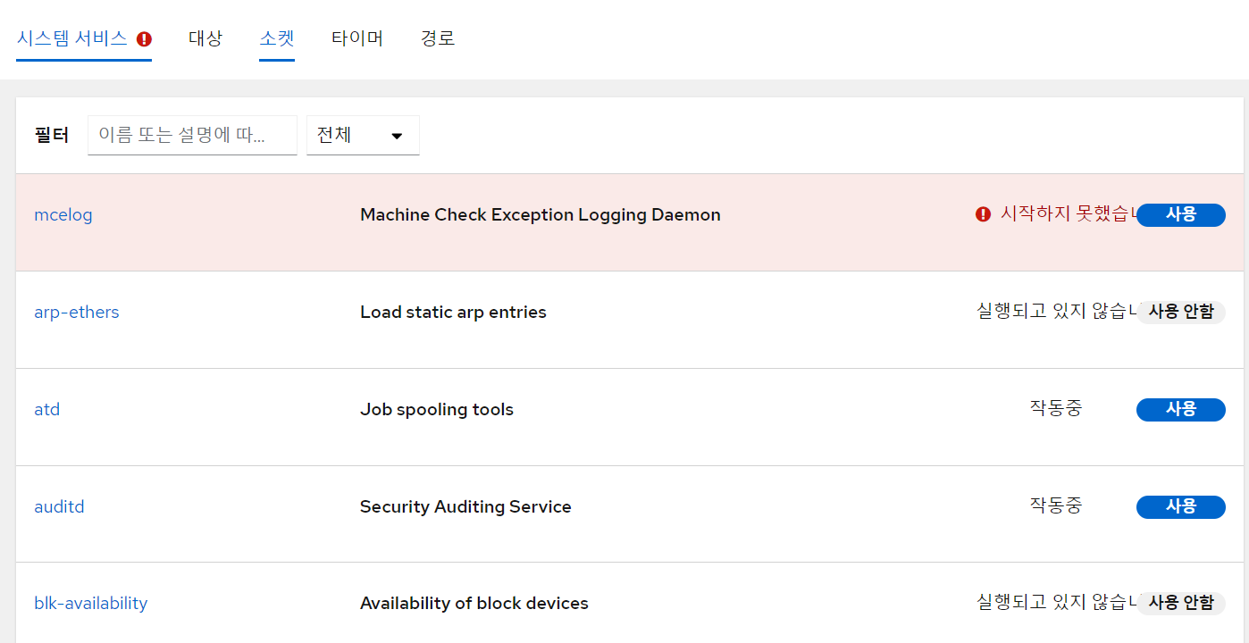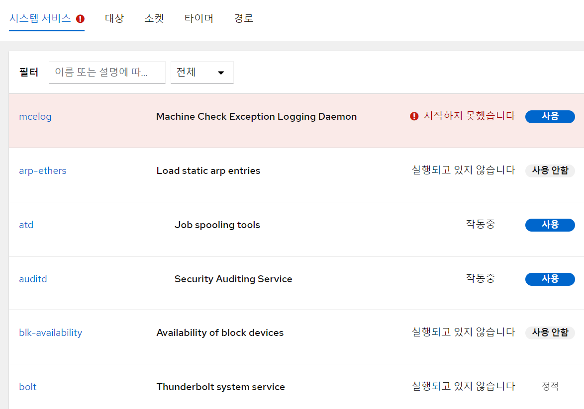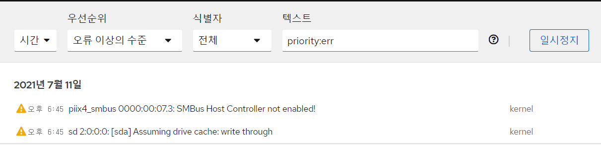 첫번째로 "로그" 메뉴 입니다. 이 로그들은 journalctl 명령어 기반으로 작동하는것으로 보입니다.