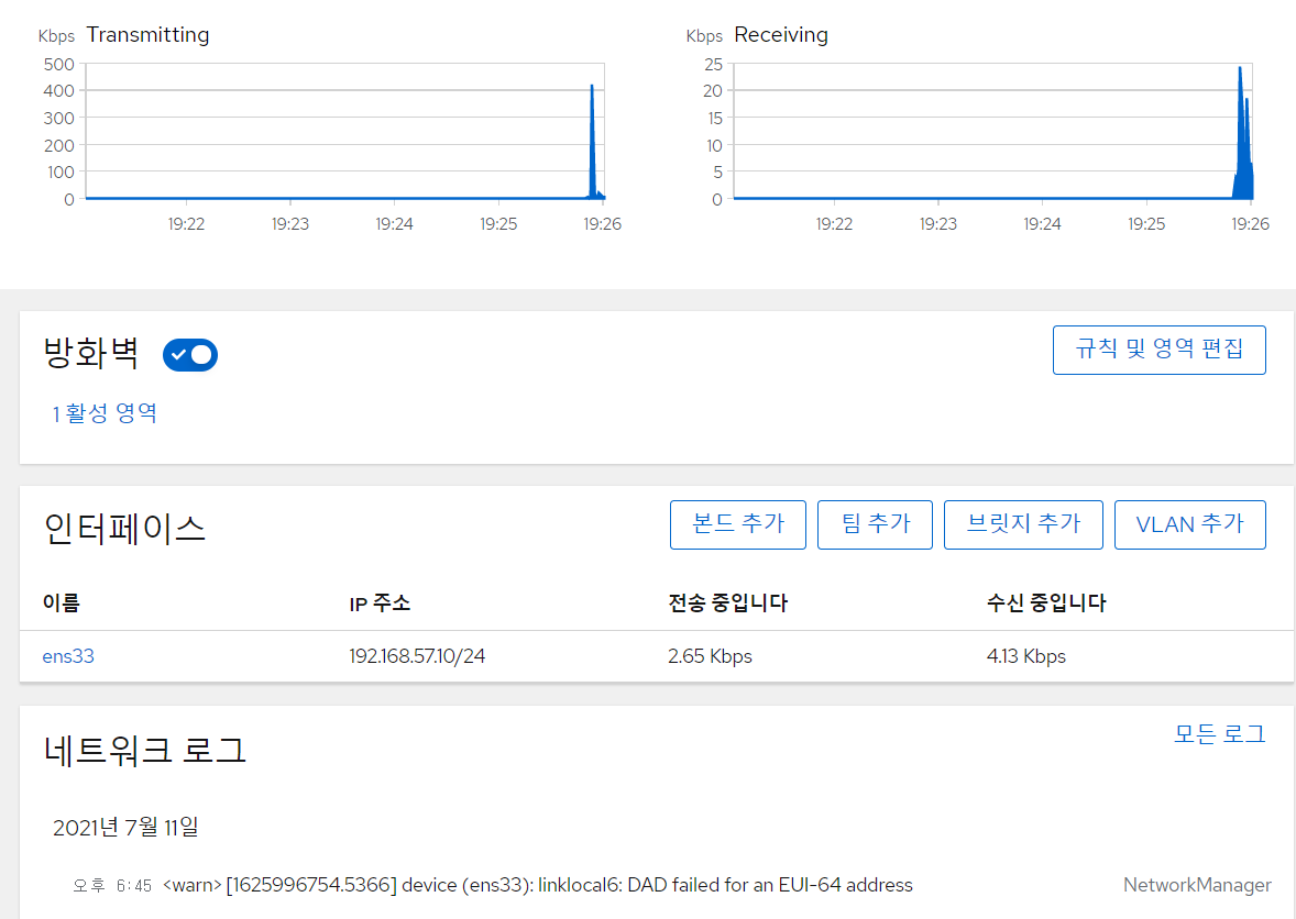 방화벽에서 "규칙 및 영역편집 (참고 2-2)"을 누르면 firewall 기반으로 관리할 수 있는 페이지가 있습니다. 여기서 방화벽을 추가할 경우 바로 로드되어 적용 됩니다. firewall에 익숙하지 않으신분은 유용하게 사용할 수 있을 것 같네요.