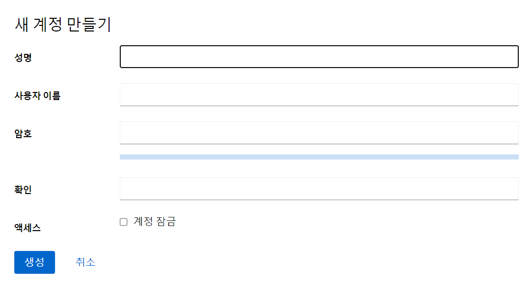 세번째로 "계정" 메뉴 입니다. 웹에서 편하게 만들 수 있도록 되어 있네요.