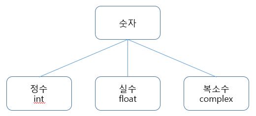 아래 이미지와 같이 파이썬에서는 숫자를 정수, 실수, 복소수로 구분 됩니다.