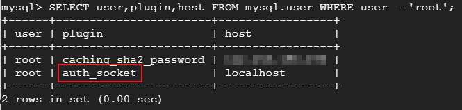 SELECT user,plugin,host FROM mysql.user WHERE user = 'root';