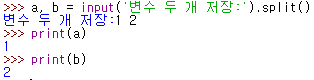 - 변수1, 변수2 = input().split()