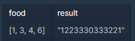 문자열의 가운데에 0을 추가하고 food 배열의 뒤에서부터 인덱스에 접근하여 뒤에서부터 문자열의 절반만큼 answer 배열에 문자열을 추가하고 반복합니다. 해당 코드를 실행하면 나머지 문자열(0333221)이 저장됩니다.