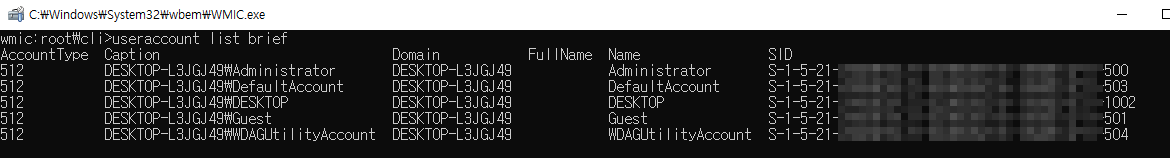 - 4 24333100-3174512425-4165118588 : 해당 시스템의 고유 식별자로써 동일한 컴퓨터에 윈도우를 재설치해도 동일값을 가지지 않음