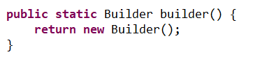 마지막으로 this는 빌더 객체 자신(this)을 반환하여 메서드 체이닝을 사용할 수 있도록 하기 위함이며 이는 빌더 패턴 객체를 직접 코드로 구현할 때 들어가는 부분입니다.