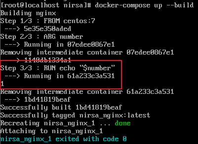 build 문법을 사용할 때에 하위 옵션(context, args 등)을 사용하게 되면 build: 옆에 인수를 비워두고 하위 옵션에 작성해주어야 합니다. 아래 코드를 참고 하시고, Dockerfile에 있는 환경변수 number에 docker-compose.yml을 이용하여 args로 환경변수에 값을 넣어준 결과 입니다.